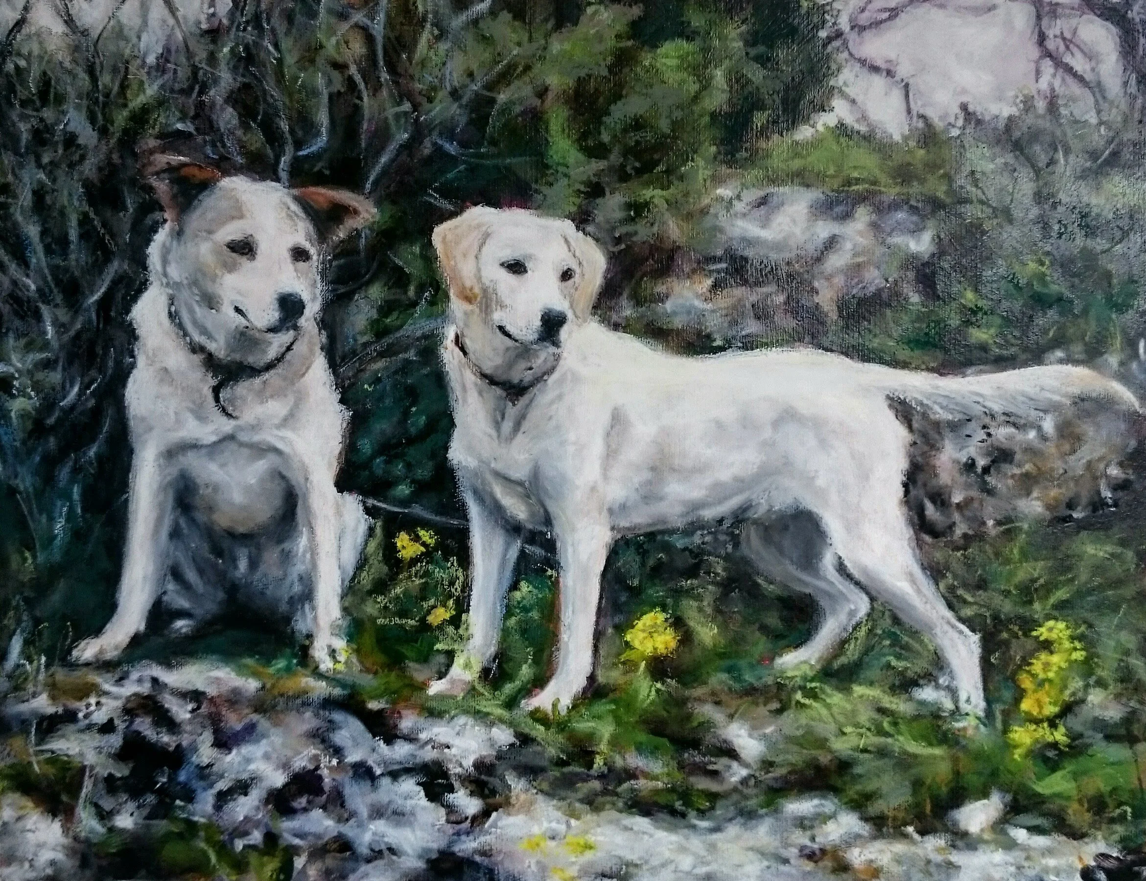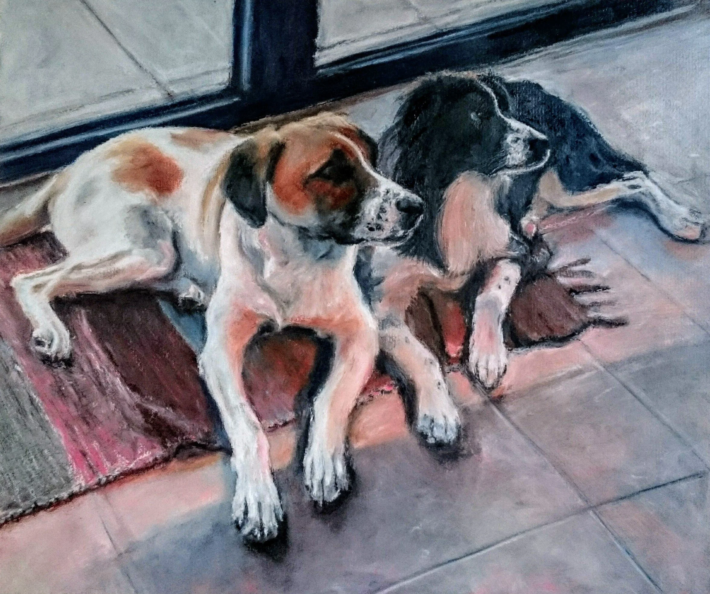 Jess and Rocky. Acrylics and oil pastel on paper.
